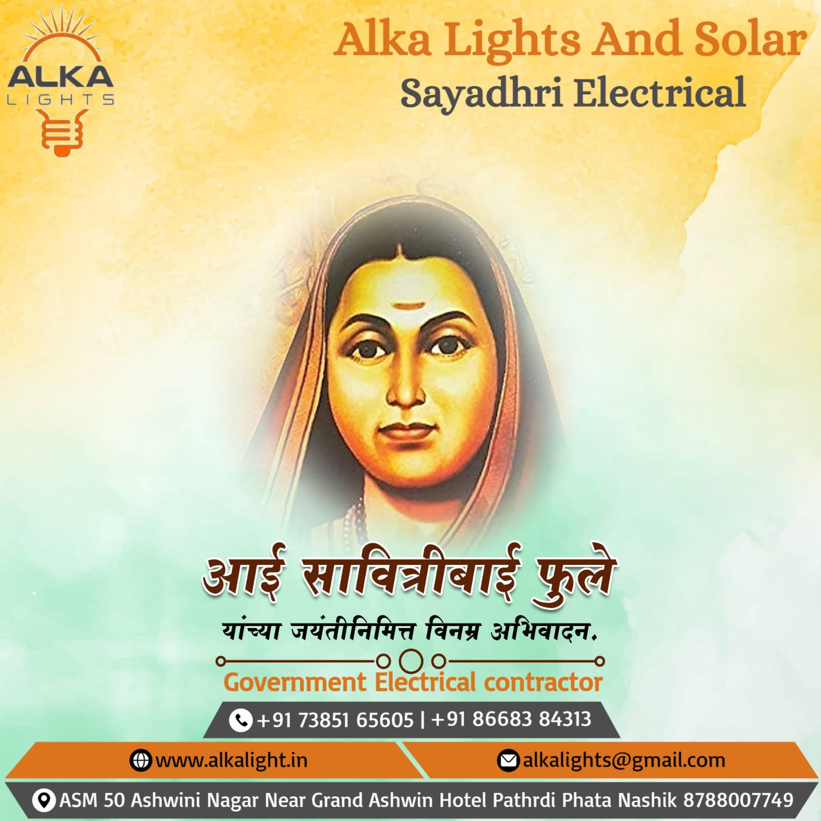 Greetings from Alka Lights And Solar Sayadhri Electrical #SavitriPhuleJayanti #savitribaiphule #india #women #Leader #SocialReformer #pune #dalit #womenempowerment #phule