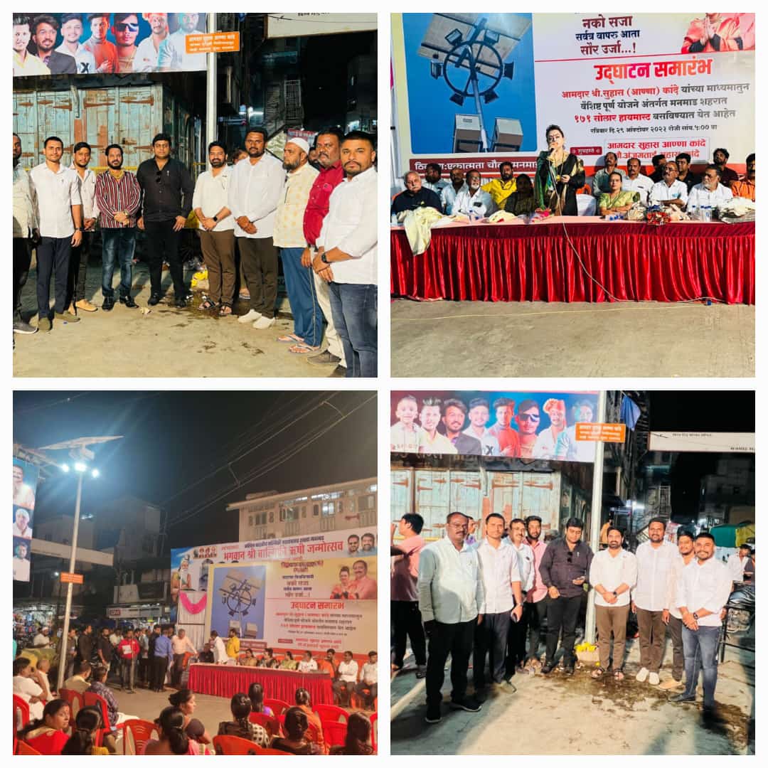 मा.आमदार श्री.सुहास आण्णा कांदे सो.यांच्या माध्यमातून वैशिष्टपूर्ण योजने अंतर्गत मनमाड शहरात (रू.४.९० लक्ष)१७१सोलर हायमास्ट बसविण्यात येत आहेत.